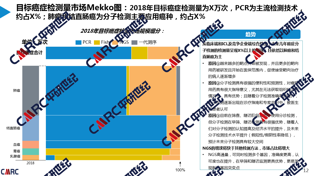 賽沛是丹納赫旗下專注分子診斷系統(tǒng)技術(shù)的國際知名企業(yè),其GeneXpert系統(tǒng)整合樣品制備、擴(kuò)增及檢測三個步驟于一個獨立的試劑盒中,并將其自動化,大量縮減人工,減少污染。 當(dāng)前腫瘤疾病發(fā)病率居高不下,委托方準(zhǔn)備將國外已成熟應(yīng)用的“腫瘤伴隨診斷和疾病監(jiān)測”產(chǎn)品引入中國市場,希望通過市場研究,判斷市場機(jī)會有多大。