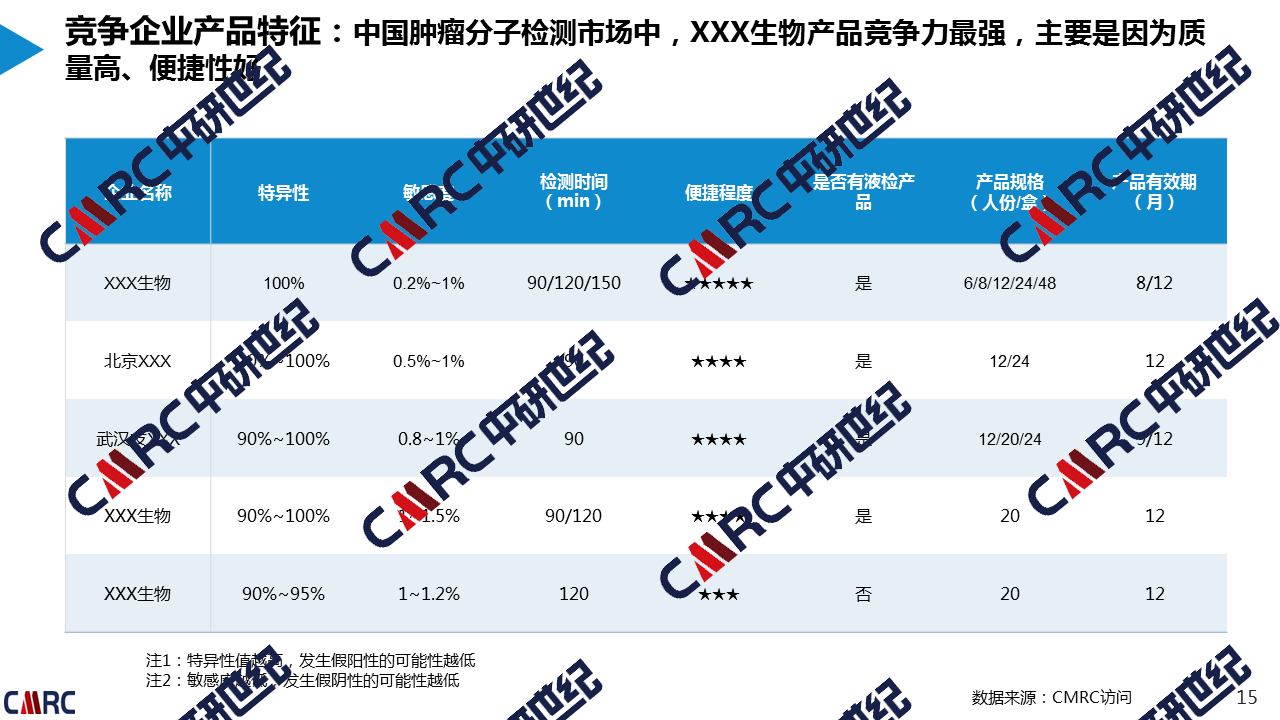 通過腫瘤科室醫(yī)生訪談及競品研究,獲取下述內(nèi)容 1、各類腫瘤疾病發(fā)病情況、病患特征及趨勢; 2、腫瘤確診流程及治療流程,其中應(yīng)用的檢測手段及指標(biāo)定量; 3、癌腫瘤臨床診斷和疾病監(jiān)測過程中的痛點; 4、腫瘤檢測終端收費水平; 5、腫瘤檢測市場競爭態(tài)勢。