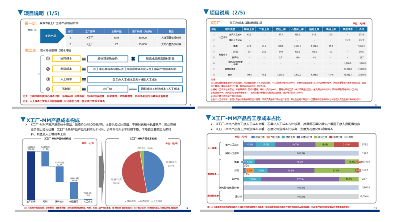 客戶需求:客戶指定國內(nèi)3家大型上市負(fù)極材料生產(chǎn)企業(yè)為調(diào)查目標(biāo),針對人造石墨生產(chǎn)各工序的成本進(jìn)行分析,最終得出目標(biāo)調(diào)查企業(yè)負(fù)極材料制造成本、人工成本、原料成本及利潤水平結(jié)論,針對核心工序如碳化、石墨化環(huán)節(jié)進(jìn)行成本深度分析,對核心工序降本提供參考依據(jù)。