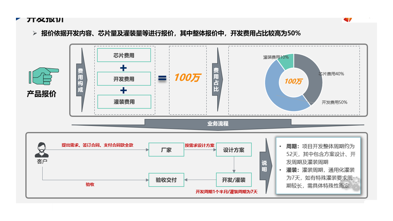 客戶(hù)是一家國(guó)內(nèi)智慧能源和建筑科技大型企業(yè),因企業(yè)數(shù)據(jù)較為私密,需要特殊加密芯片進(jìn)行儲(chǔ)存加密,以防止競(jìng)爭(zhēng)對(duì)手抄襲,固尋找下游價(jià)格較低、技術(shù)專(zhuān)業(yè)度較高、開(kāi)發(fā)實(shí)驗(yàn)室保密性較強(qiáng)的芯片供應(yīng)商。