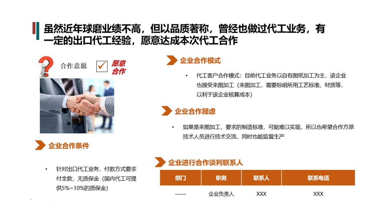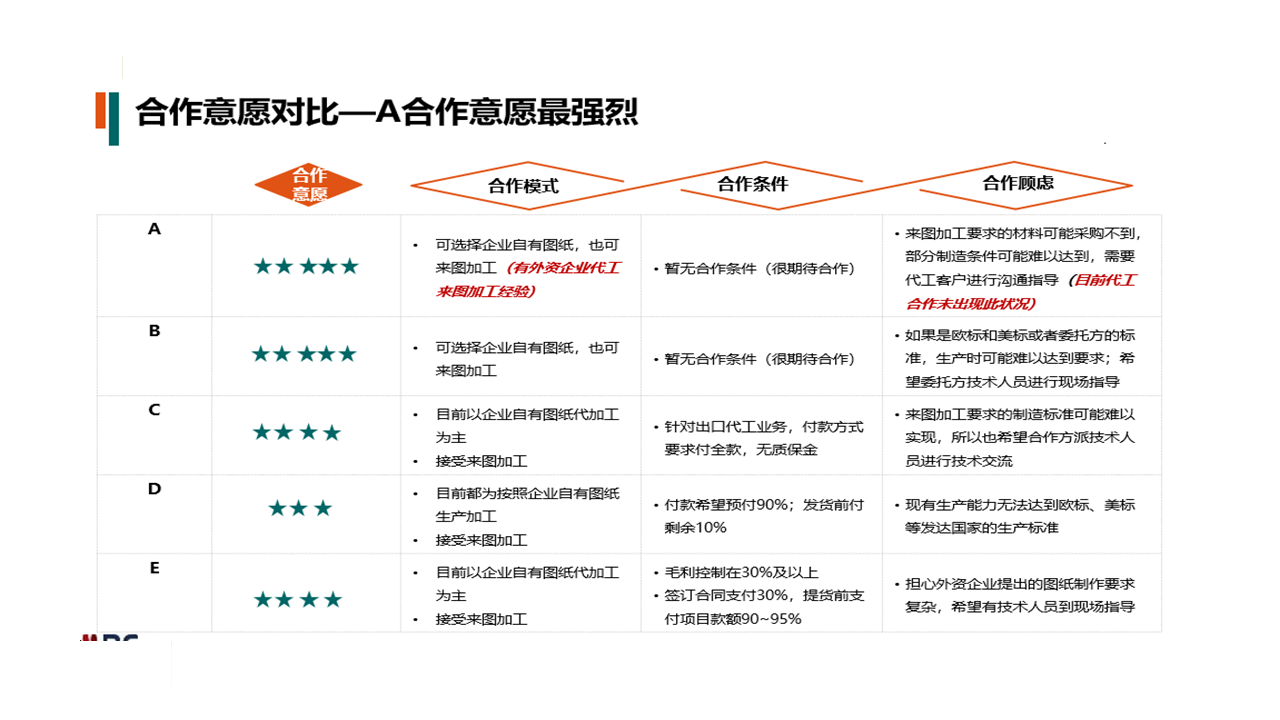 服務(wù)內(nèi)容:本次研究主要調(diào)研內(nèi)容包括:(1)銷售業(yè)績(jī)(2)目標(biāo)企業(yè)業(yè)務(wù)能力(3)研發(fā)技術(shù)能力(4)生產(chǎn)加工情況、質(zhì)量情況(5)企業(yè)代工能力(6)合作意向。