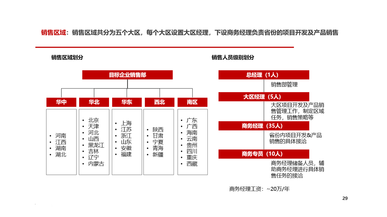 主要研究以下重點(diǎn)內(nèi)容:(1)了解目標(biāo)企業(yè)銷售團(tuán)隊(duì)組織架構(gòu);(2)明確各層級銷售人員業(yè)績要求;(3)各個(gè)銷售渠道的銷售流程及渠道管理;(4);各個(gè)銷售渠道的銷售貢獻(xiàn)占比。