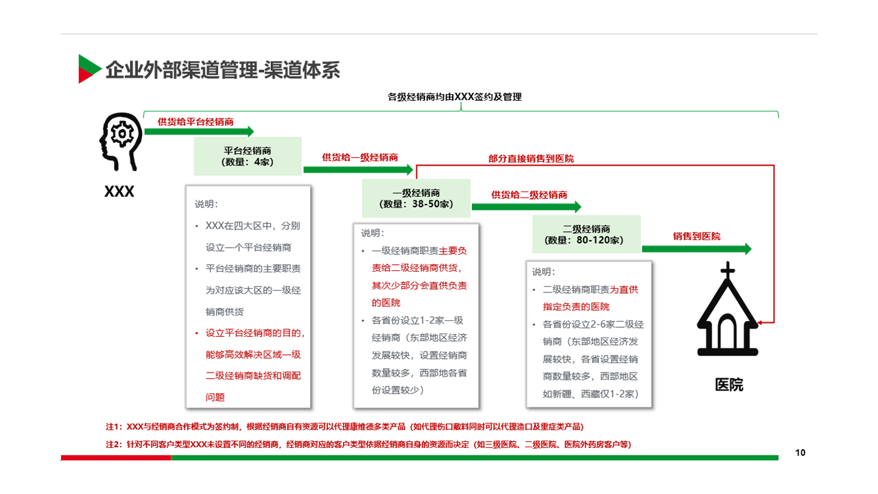 客戶需求:客戶指定7家醫(yī)療耗材樣本企業(yè),通過研究樣本企業(yè)的不同產(chǎn)品的不同銷售渠道構(gòu)成,銷售業(yè)績貢獻(xiàn)占比,經(jīng)銷商渠道體系搭建,管理方式等,優(yōu)化企業(yè)在國內(nèi)的銷售渠道,發(fā)現(xiàn)新的銷售機(jī)會(huì)。