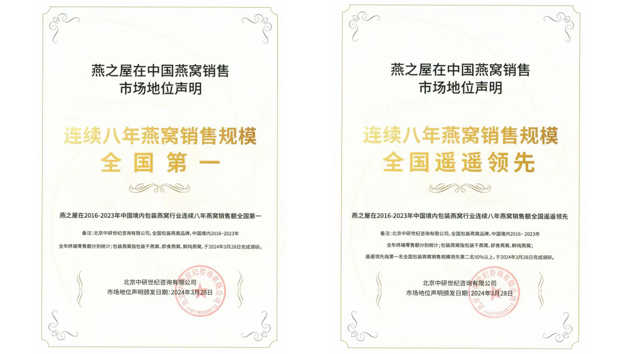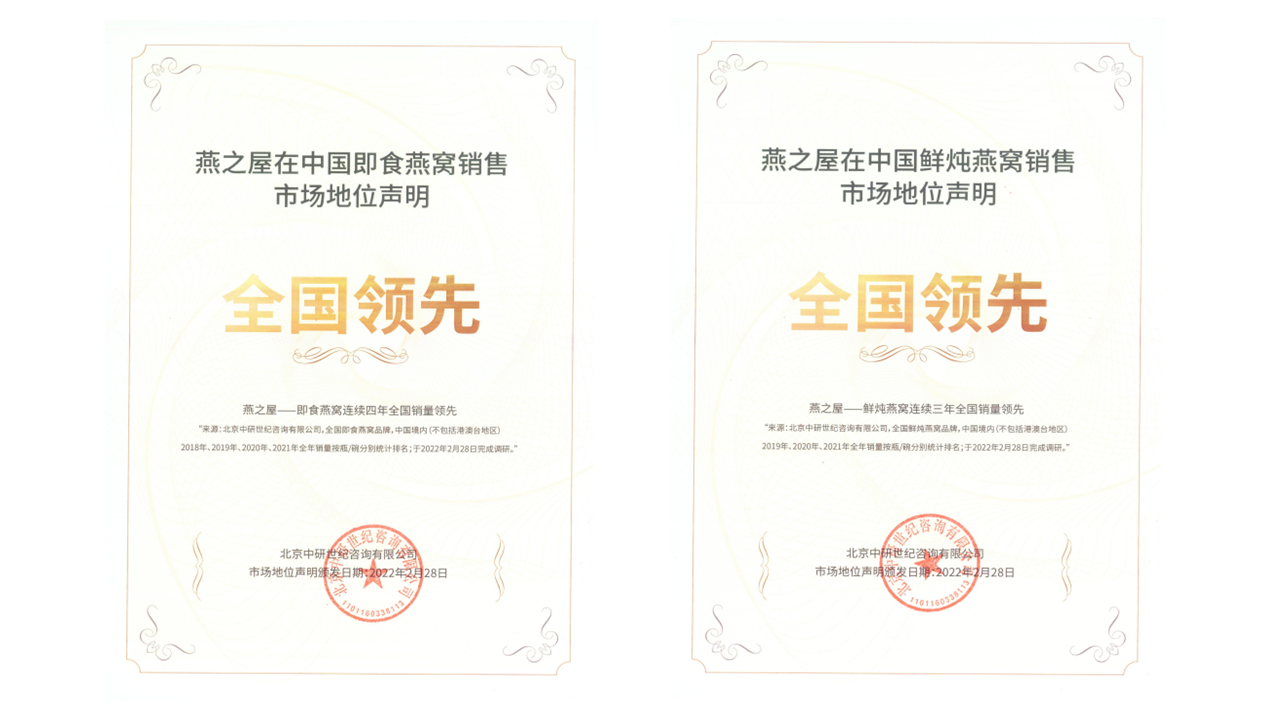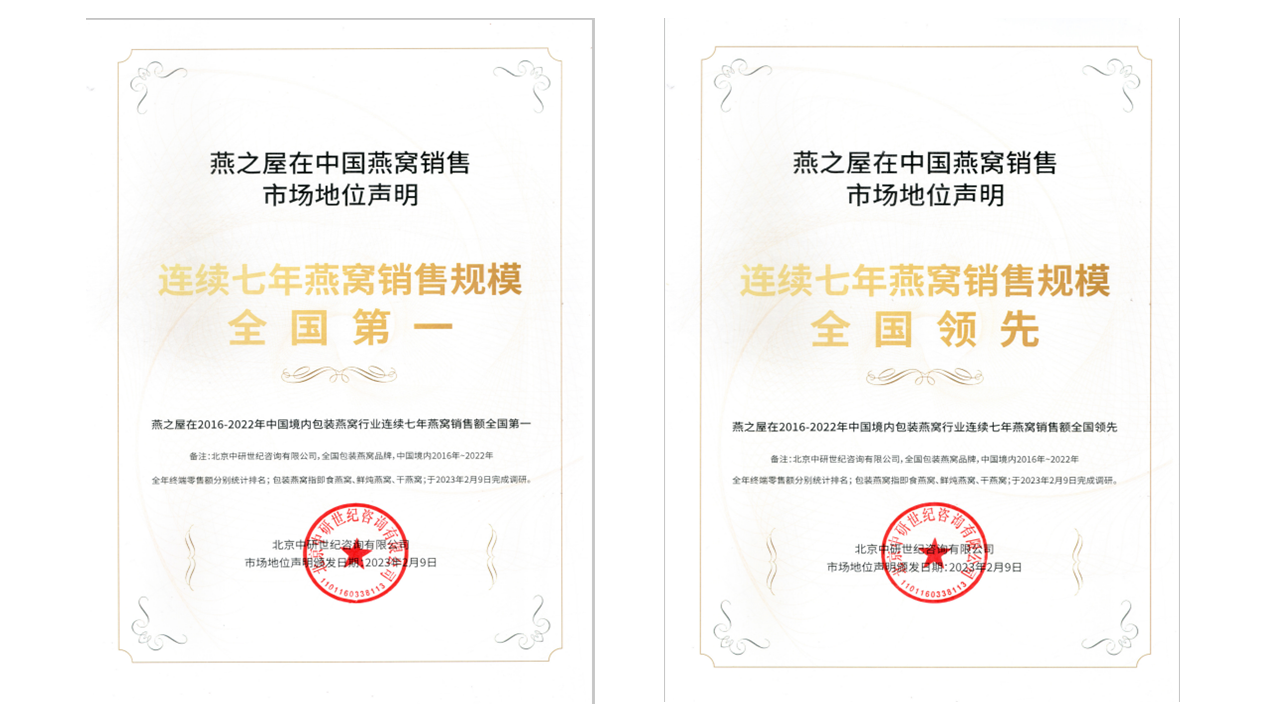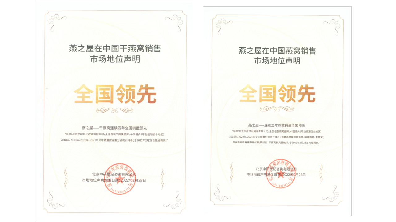 首頁 > 市場地位證明 > 燕之屋市場地位證明