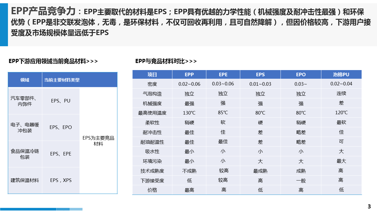 客戶需求:委托方希望通過(guò)對(duì)EPP全產(chǎn)業(yè)鏈展開(kāi)分析,以及EPP替代EPS的可能性,同時(shí)深度了解業(yè)內(nèi)4家表現(xiàn)優(yōu)異的企業(yè)其運(yùn)營(yíng)情況。
