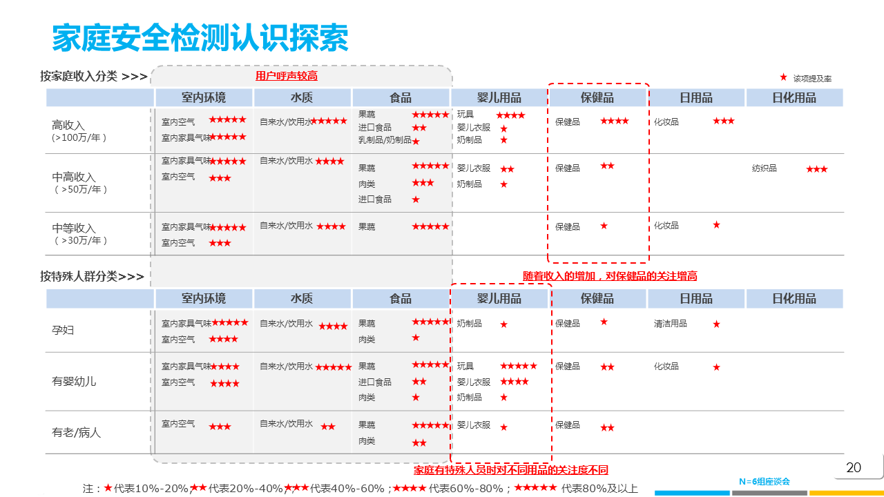 委托方希望探究食品、嬰兒用品、保健品、貴金屬和日用品、化妝品、室內(nèi)環(huán)境六大領(lǐng)域,哪些市場(chǎng)值得進(jìn)入?
