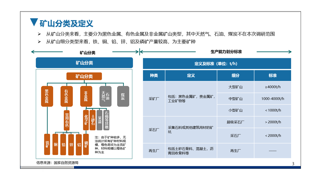 針對(duì)委托方需求本項(xiàng)目主要研究?jī)?nèi)容包括:(1)原材料、可交易商品及目標(biāo)設(shè)備整體市場(chǎng)規(guī)模;(2)采礦場(chǎng)、加工廠、再生骨料等用戶規(guī)模;(3)典型用戶分析;(4)設(shè)備國(guó)產(chǎn)化相關(guān)政策、市場(chǎng)規(guī)模及發(fā)展趨勢(shì)。