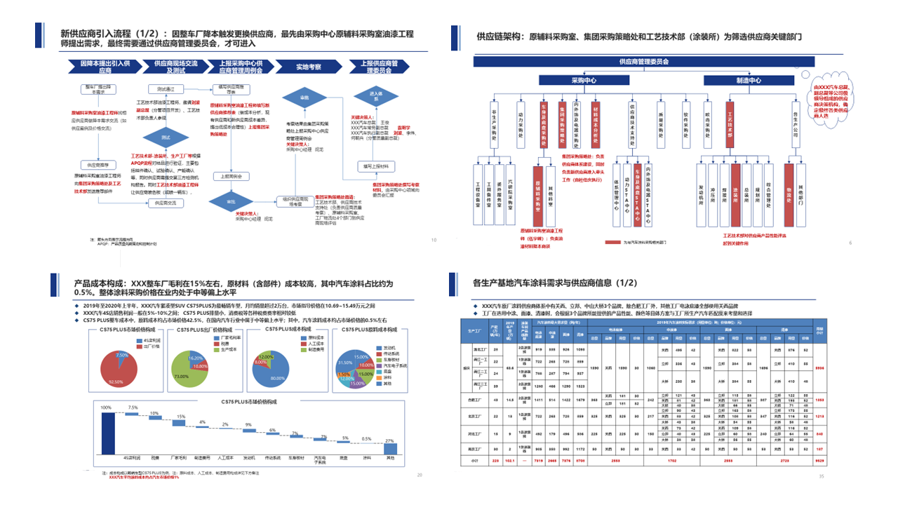 為委托方找到直接可公關的部門及對象,快速進入客戶的供應商體系提供了前提;并且在汽車涂料上深入對標競爭企業(yè)的產(chǎn)品,發(fā)現(xiàn)自身的不足,為后期改善產(chǎn)品及銷售產(chǎn)品提供了相關依據(jù)。