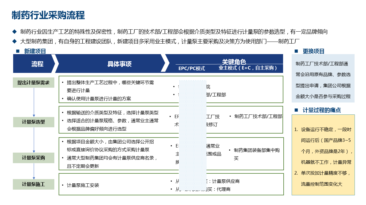 (1)制藥行業(yè)市場(chǎng)規(guī)模;(2)制藥行業(yè)計(jì)量泵應(yīng)用特征;(3)競(jìng)爭格局;(4)客戶購買決策。
