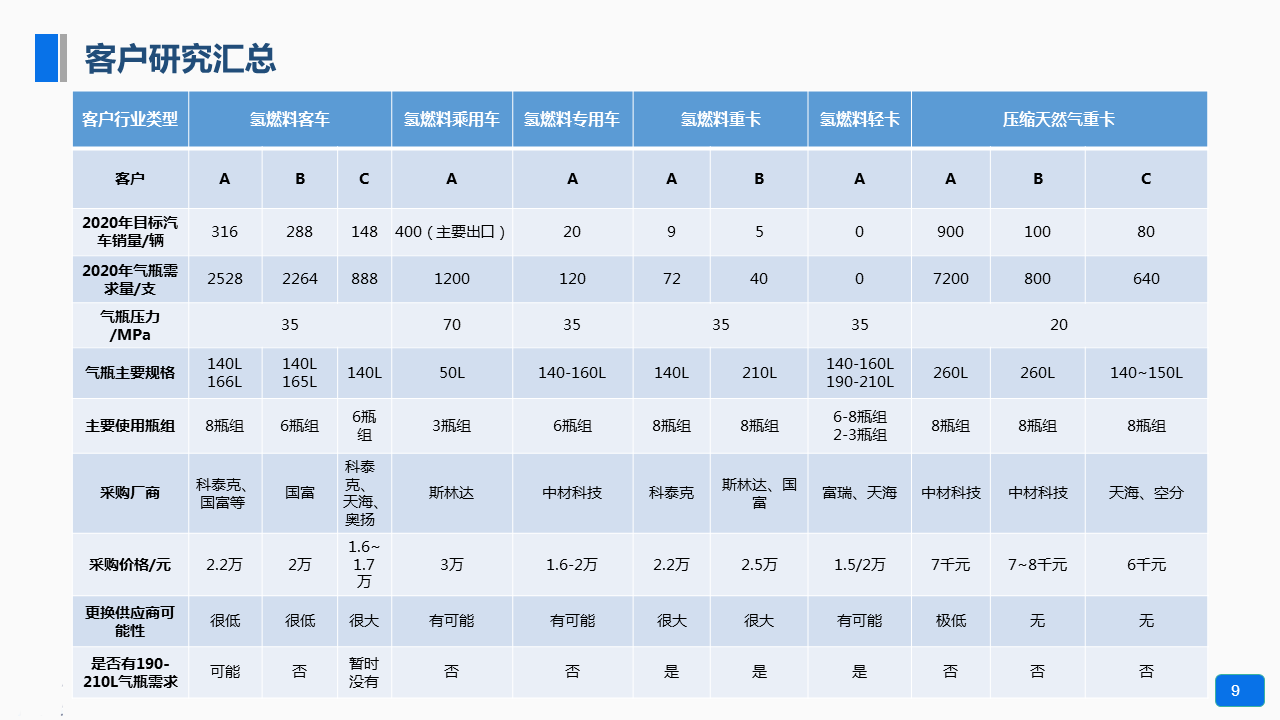 通過同行企業(yè)和下游用戶的調(diào)查,找到III型氣瓶最大需求的有效市場,以確定業(yè)務(wù)方向,同時了解190-210L氣瓶的市場需求情況,以解決現(xiàn)有銷售問題。