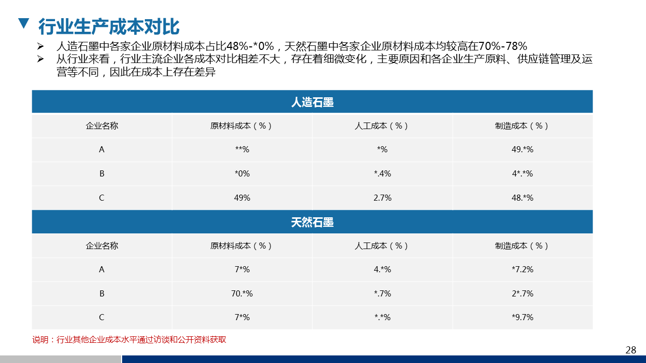 負(fù)極材料企業(yè)成本關(guān)鍵指標(biāo)調(diào)研