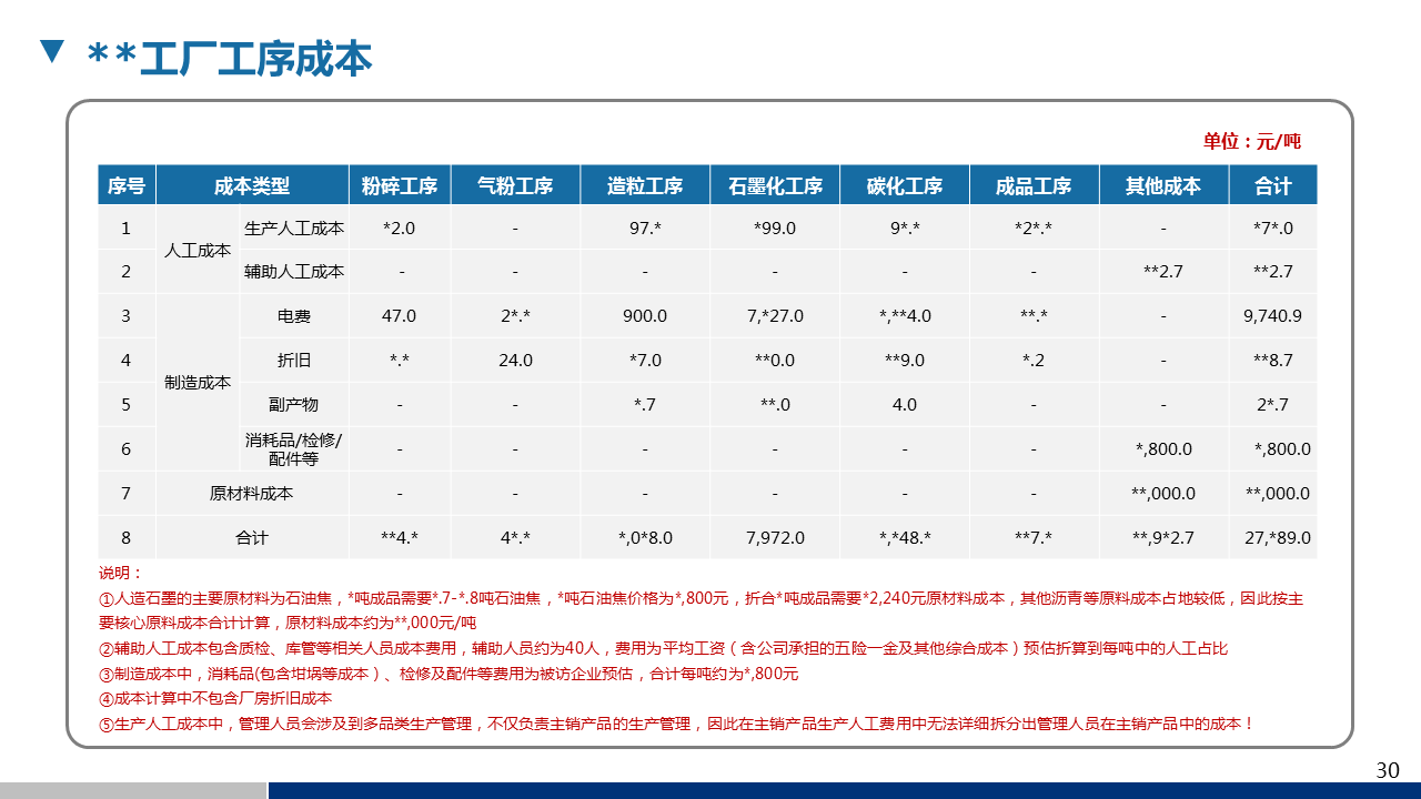 對(duì)指定企業(yè)主要工廠(chǎng)人造石墨和天然石墨九個(gè)生產(chǎn)工序成本關(guān)鍵指標(biāo)進(jìn)行調(diào)研。