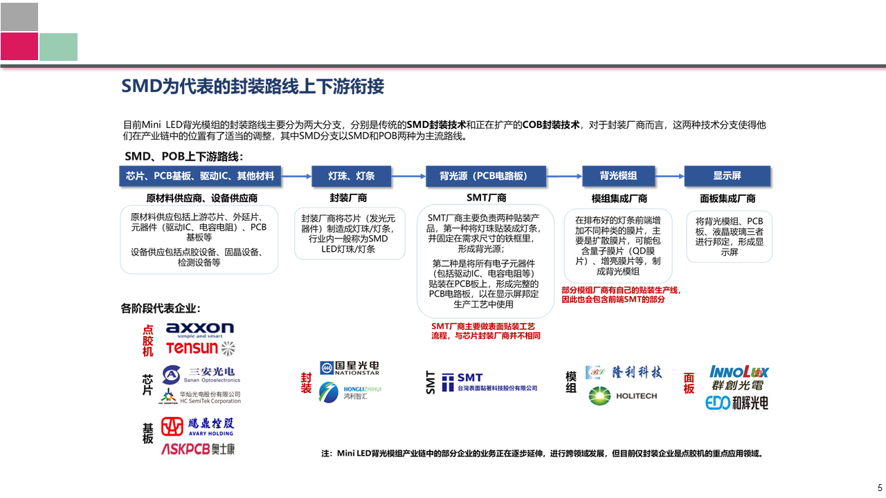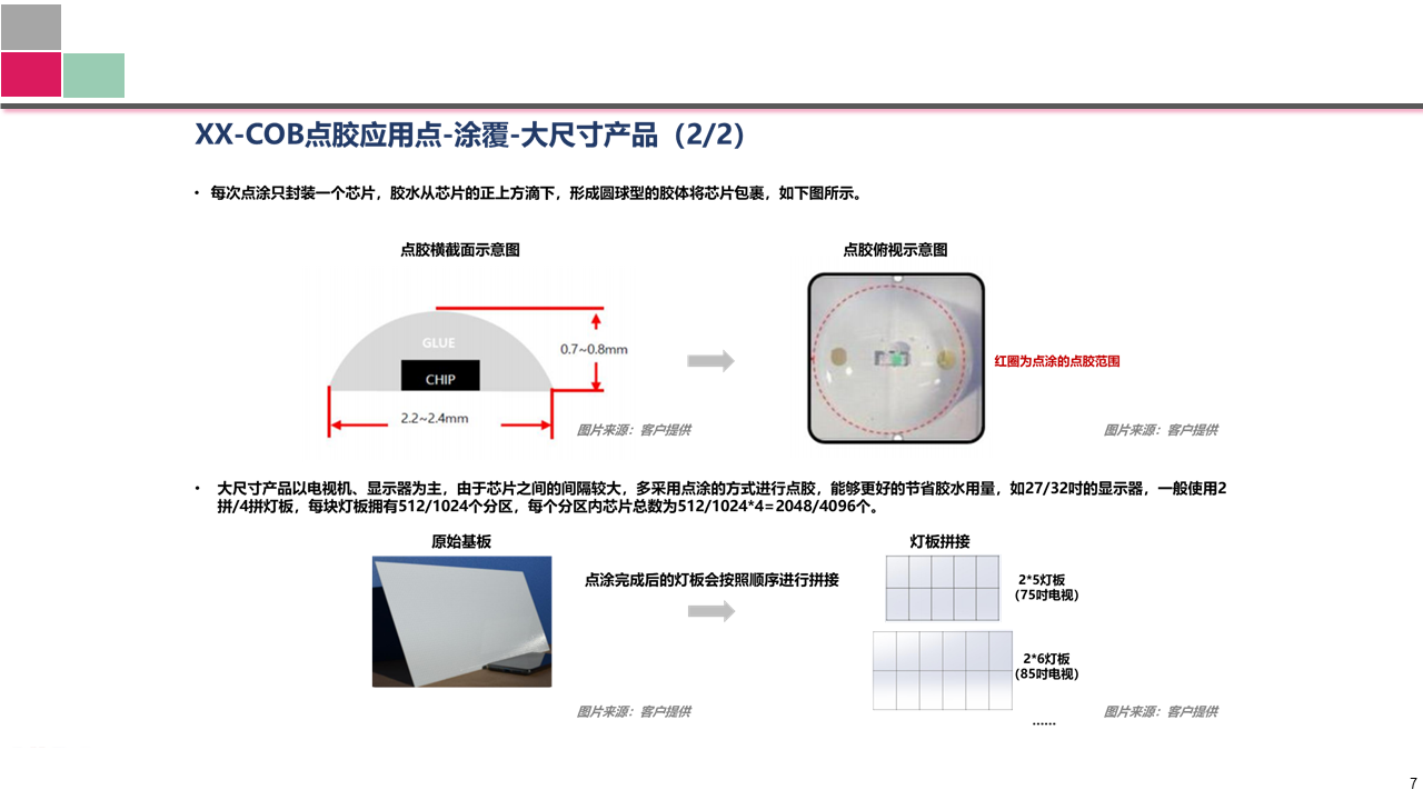 了解MiniLED背光模組行業(yè)的生產(chǎn)工藝流程,通過對工藝流程中有點(diǎn)膠或精密流體控制的環(huán)節(jié)深入研究,了解生產(chǎn)過程中目標(biāo)產(chǎn)品的具體應(yīng)用機(jī)會點(diǎn),為后續(xù)拓展目標(biāo)行業(yè)提供參考依據(jù)。