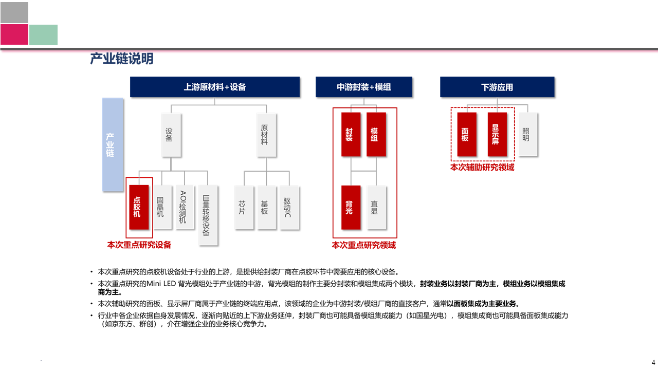 1、Mini LED背光模組行業(yè)研究; 2、三家目標(biāo)企業(yè)深入研究。