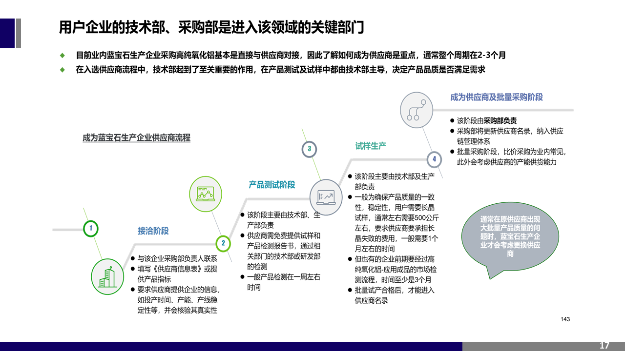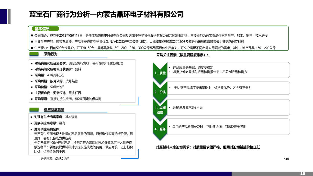 對高純氧化鋁市場環(huán)境進行系統(tǒng)分析,為客戶最終決策是否投產(chǎn),提供有效支持依據(jù);同時帶著委托方到藍寶石廠商實地訪談和考察,讓委托方對高純氧化鋁的應用有更清晰的認知,并為后續(xù)開拓客戶資源提供支持。