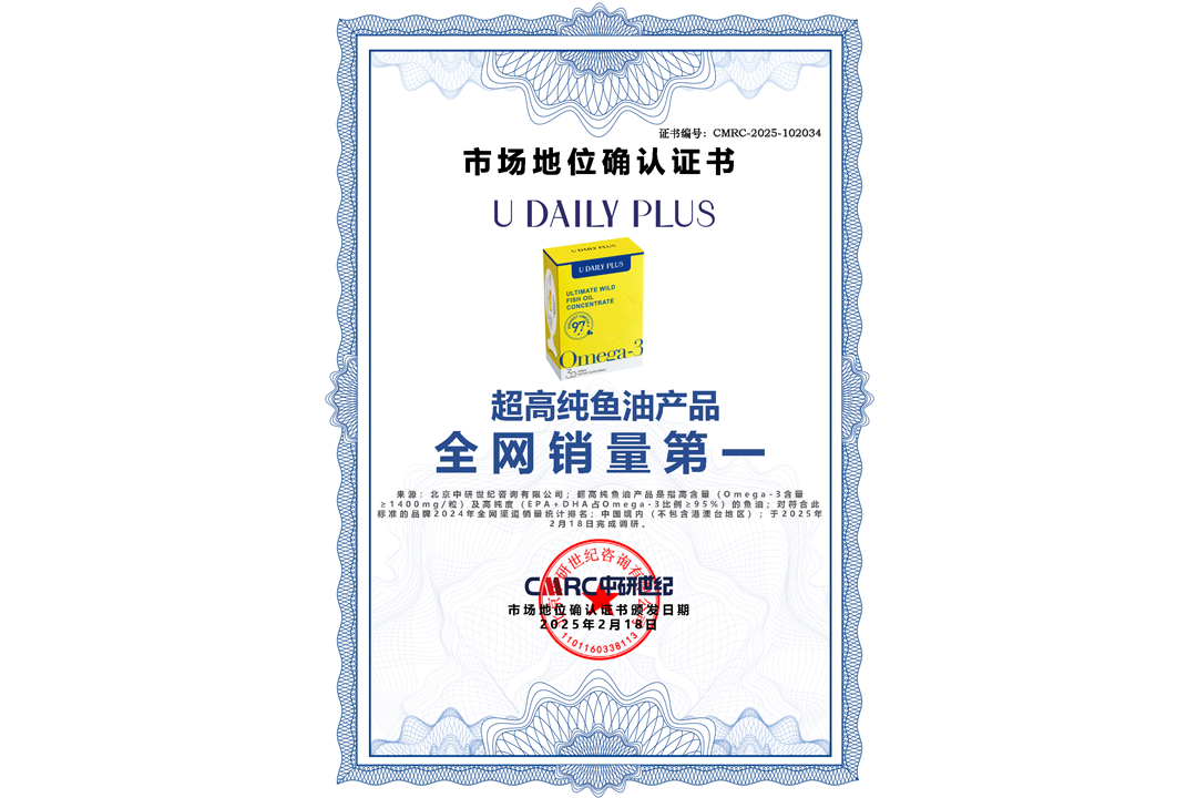 首頁 > 市場(chǎng)地位證明 > 市場(chǎng)地位證明丨U DAILY PLUS超高純魚油全網(wǎng)銷量第一