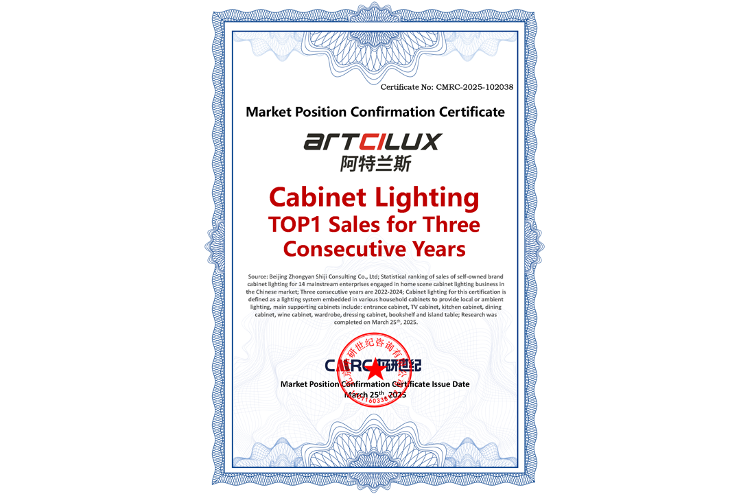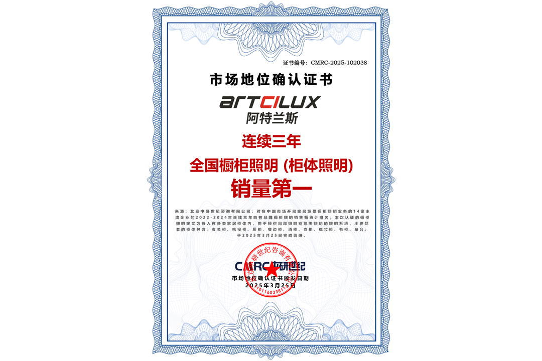 首頁(yè) > 市場(chǎng)地位證明 > 市場(chǎng)地位證明丨阿特蘭斯-櫥柜照明(柜體照明)銷售額連續(xù)三年全國(guó)第一認(rèn)證