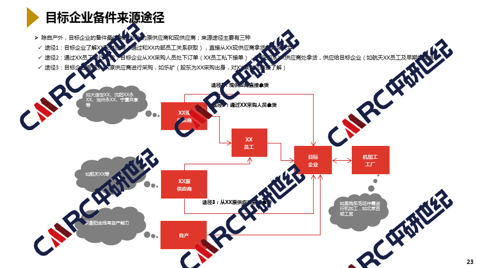 服務(wù)內(nèi)容:銷售仿制備件企業(yè)的供應(yīng)商、供應(yīng)商生產(chǎn)工廠所在地、銷售價格及出口情況等。
