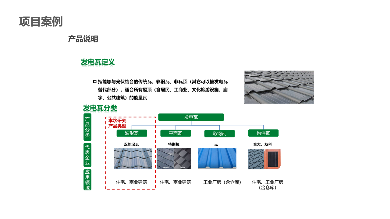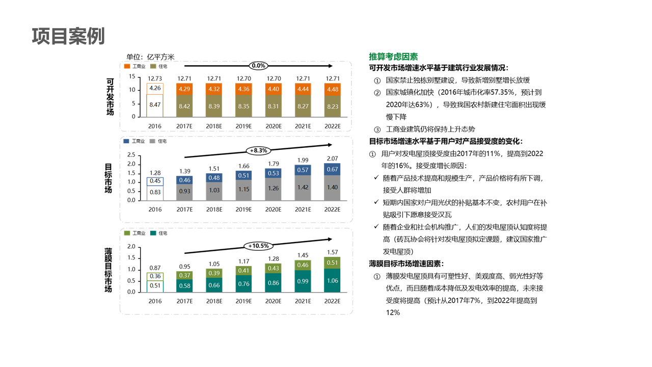 客戶需求:通過對光伏瓦的市場規(guī)模現(xiàn)狀和未來規(guī)模潛力測算,為委托方制定企業(yè)5年發(fā)展規(guī)劃做依據(jù)。