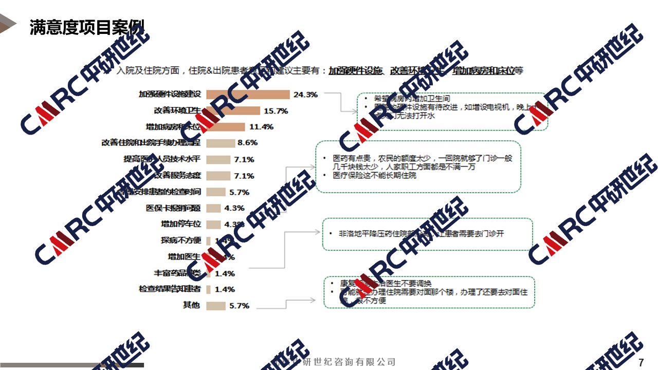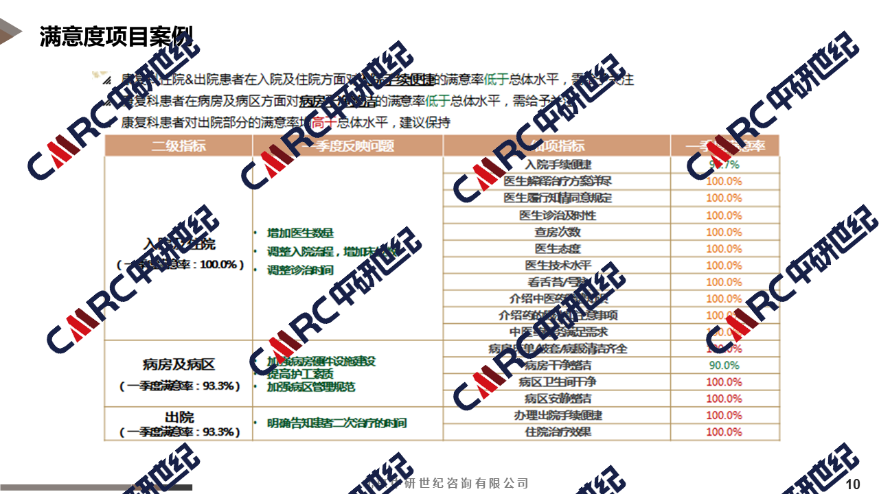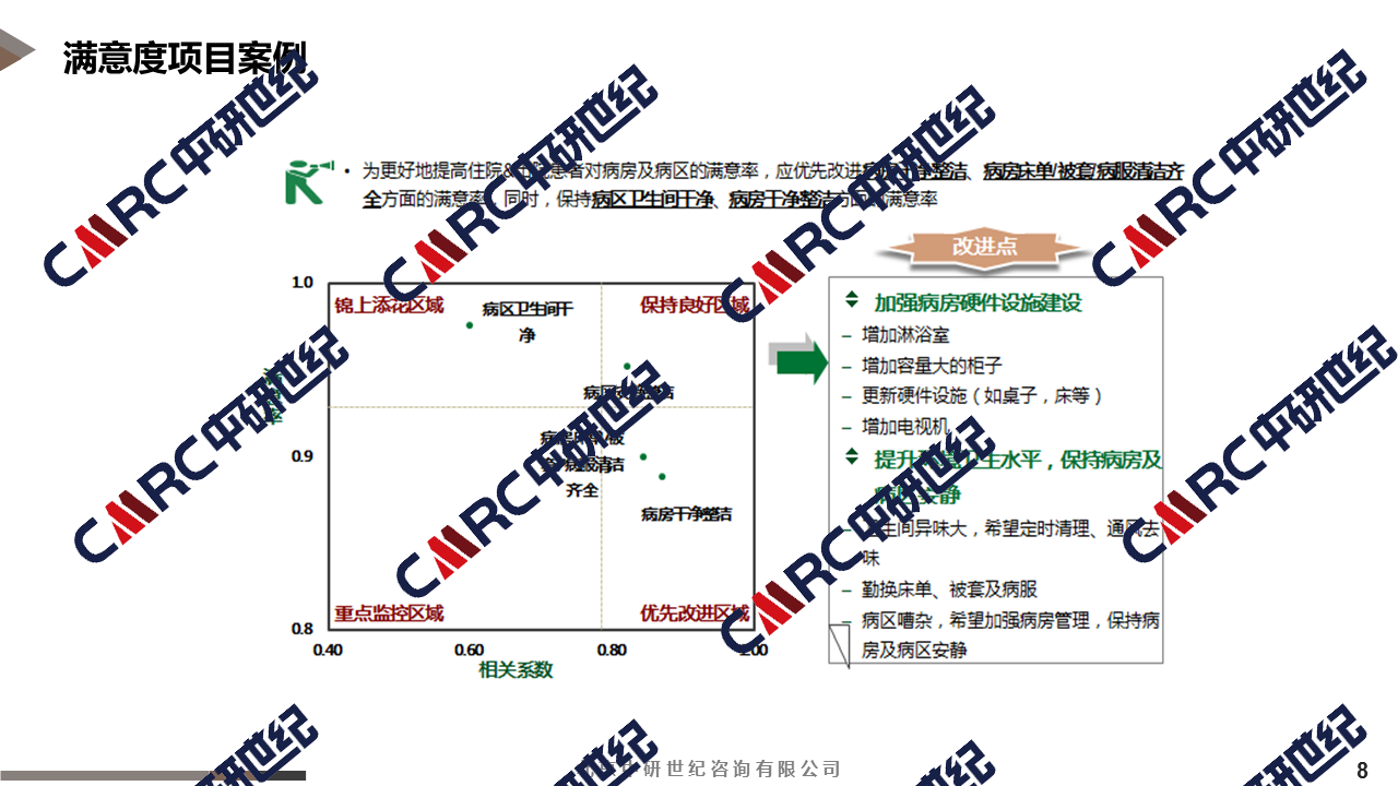 Through continuous satisfaction study, help client to identify weak links in management, and point to all departments of hospital through patient feedback. According to feedback from patients, organize all departments to make rectification plans and supervise rectification progress to form a closed loop. Solved problems that patients had been complaining but not solved in the past, patients praised the hospital and recognized the efforts made by hospital; At the same time, optimized internal department management